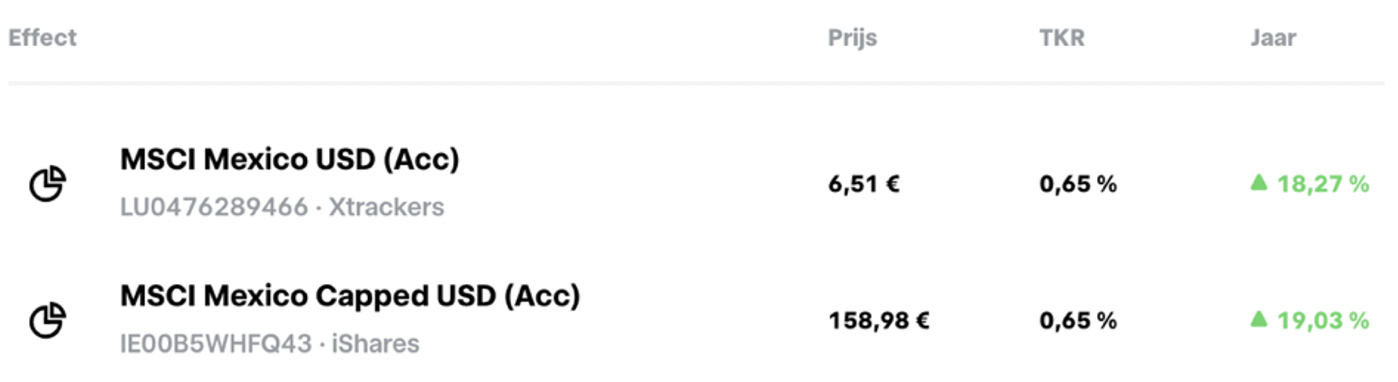 Two ETFs grafted on the MSCI Mexico are available at Trade Republic. The Xtrackers issue consists of 26 securities and its main positions are Grupo Finance Banorte (14.5% of the index), Beer producer Fomento Economico Mexicano (13.1%) and retail chainWalmex (11.3%). The ETF accounts for about 85% of the total market capitalisation in the country. Basic consumer goods has a 38% weighting in the index, a sector that should benefit from the strong labour market and the expected fall in interest rates. Financials account for 18% of MSCI Mexico and the materials sector 17%. MSCI Mexico Capped USD from iShares is less concentrated because being ‘Capped’ means that the index composition is revisited regularly, limiting the largest positions.