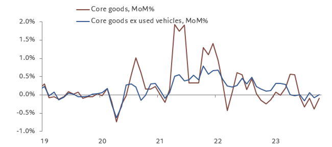 Chart 4: Core goods prices stabilizing outside of used vehicles