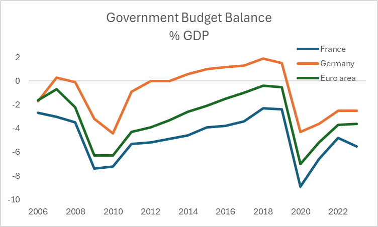 Figure 2 : La France a un déficit budgétaire plus important que la moyenne de la zone euro